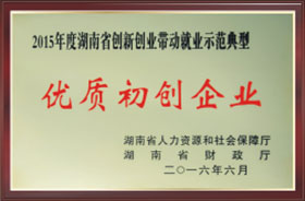 榮獲2015年度湖南省創(chuàng)新創(chuàng)業(yè)帶動(dòng)就業(yè)示范典型優(yōu)質(zhì)初創(chuàng)企業(yè)