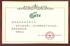 榮獲第十二屆中國(guó)國(guó)際農(nóng)產(chǎn)品交易會(huì)優(yōu)秀組織獎(jiǎng)