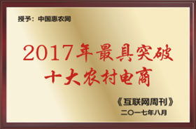 榮獲2017年最具突破的10家農(nóng)村電商稱號(hào)名列榜首