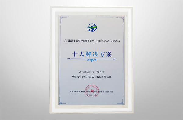 “互聯(lián)網(wǎng)農(nóng)業(yè)電子商務(wù)大數(shù)據(jù)開(kāi)發(fā)應(yīng)用”入選首屆長(zhǎng)沙市新型智慧城市“十大解決方案”。
