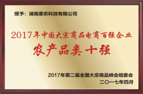 榮獲2017年中國(guó)大宗商品電商百?gòu)?qiáng)企業(yè)農(nóng)產(chǎn)品類十強(qiáng)
